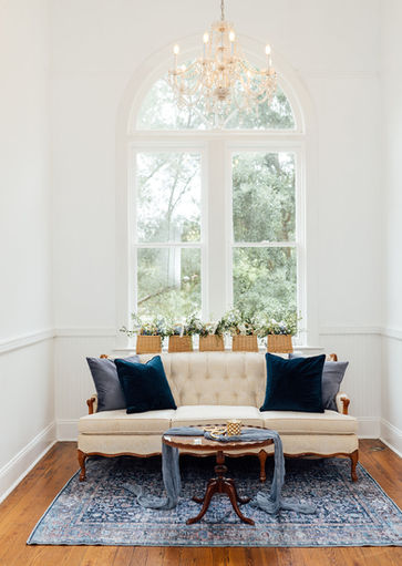Blue palettes bring a calm, romantic energy to the space — from soft dusty tones to deeper navy accents. Paired with the venue’s warm textures and vintage details, blue creates a balanced look that feels elegant without being formal.